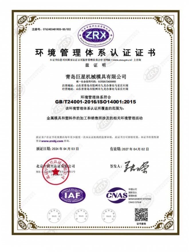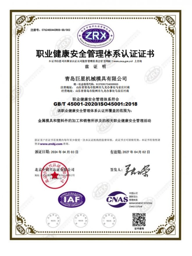 青岛巨星机械模具有限公司位于美丽的胶州湾畔——青岛市胶州市。成立于1995年。多年来一直致力于塑料模具,金属冲压模具,橡/硅胶模具,板片材挤出模具等模具的研发制造,并且配有塑料制品标准化生产车间,90T-800T各型号注塑机齐全,可为您提供模具研发与产品生产一站式服务,本司已通过ISO9001质量管理、ISO14001环境管理、ISO45001职业健康安全管理等体系认证。目前已与美国通用汽车,韩国大宇造船、现代重工,俄罗斯,巴西,非洲等国家或地区的实力公司建立长期合作关系。